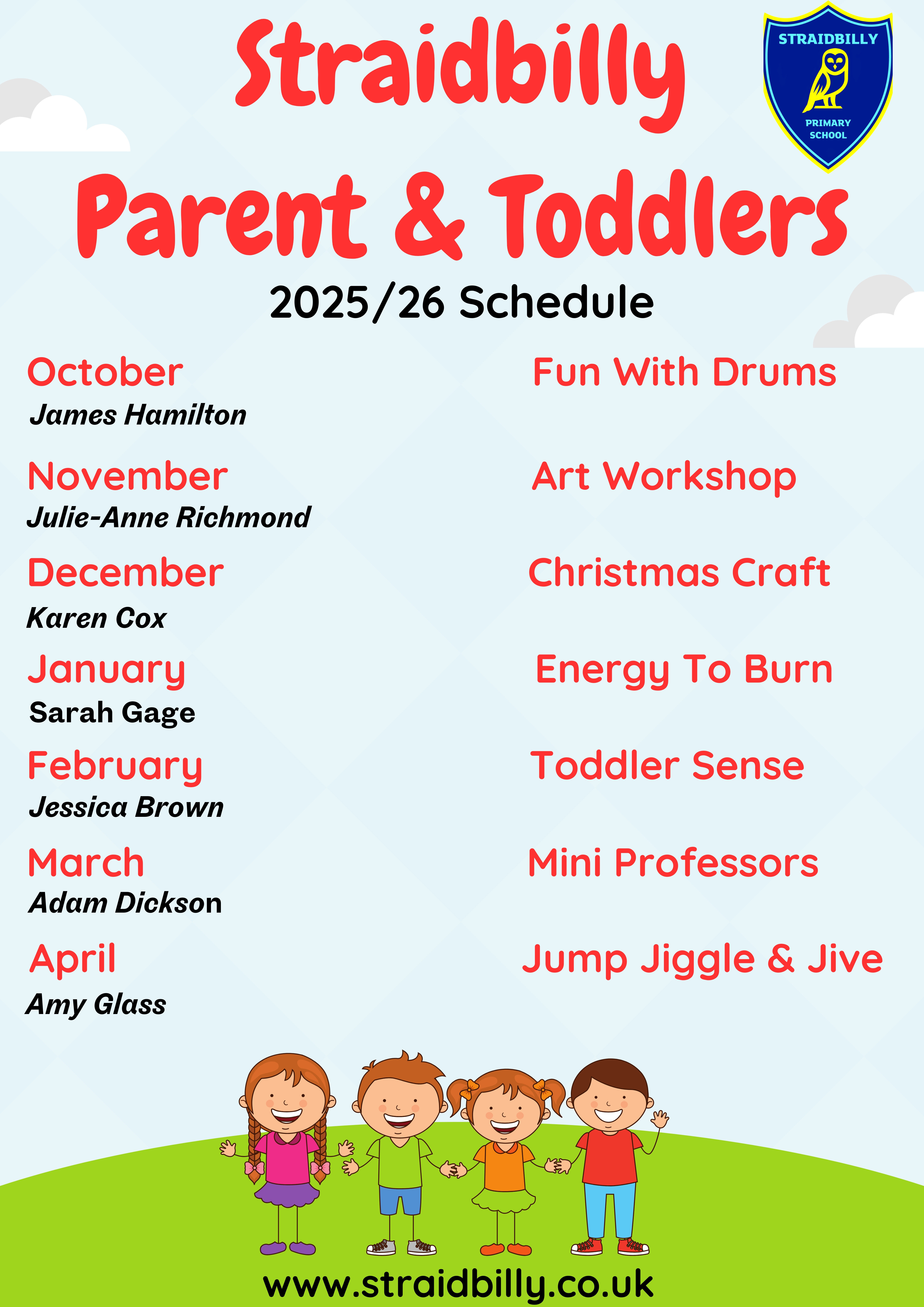 Straidbilly Parent & Toddlers meet on the first Monday of the month @10am! 0-4 years olds welcome!